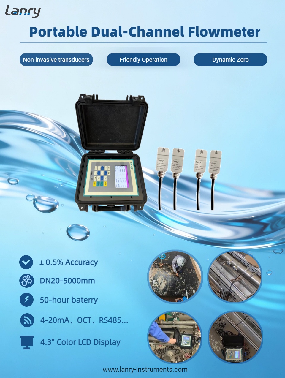 Portable Dual-channel Transit-time Ultrasonic Flowmeter TF1100-DP